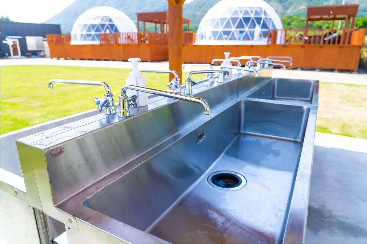 調理や手洗い、歯磨き等で利用できます。お部屋から約20秒の距離にございます。食器用洗剤とスポンジは備えて付けています。