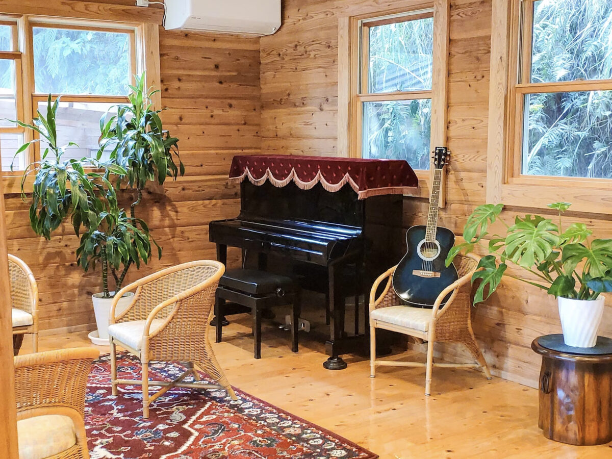また防音効果の高い設備となっており、ログハウス内での楽器演奏も歓迎です!