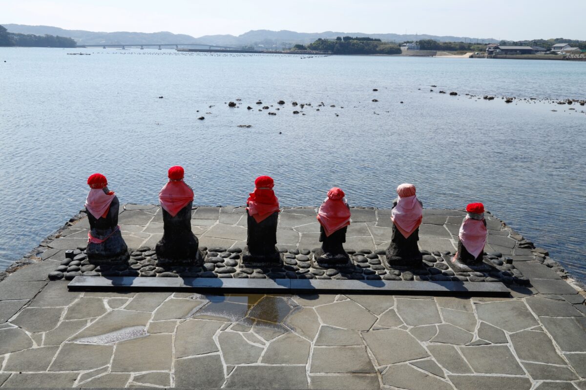 干潮時には直接拝めるお地蔵さん。 満潮時は頭上のところまで浸かってしまいます。お腹に穴がほげているのではらほげ地蔵と言います。