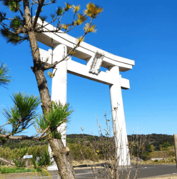 白の鳥居が印象的な神社です。 本殿の天井絵も一見の価値あり。境内の裏山は天然記念物に指定された場所にもなっています。