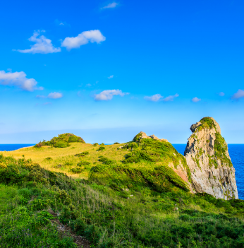 エメラルドブルーの綺麗な海と絶景が楽しめます。