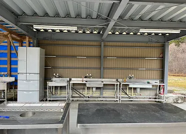 キャンプ中のお食事は共同の炊事場やBBQハウスで衛生的かつ快適に行えます。