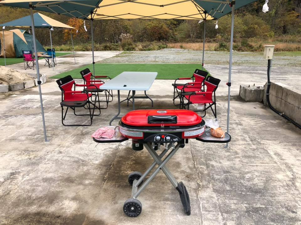 ●BBQセット:コンロ、トング、テーブル、椅子。