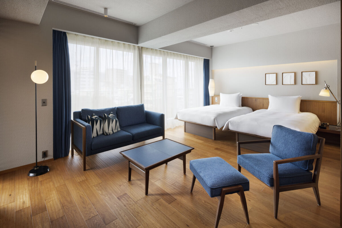 長期滞在にも適した45平米のグランドツイン。開放感のある間取りと厳選した家具、アメニティにもこだわりました。足元から天井まで及ぶ大きな窓一面に広がる市街地の景色とともに、贅沢な時間を。これまでにない、新しい那覇ステイを叶えます。ソファベットを利用して最大3名様までご宿泊可能です。