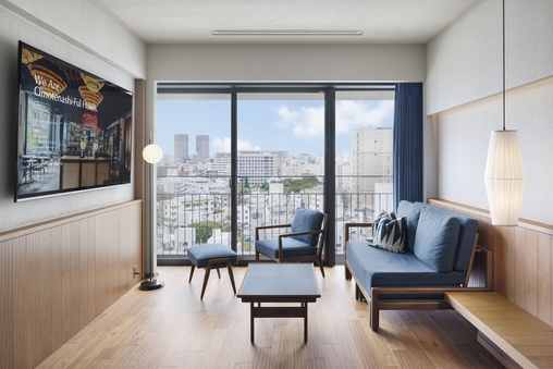 那覇の眺望が楽しめるバルコニーを備えたバルコニーツイン。室内に加え、10平米もある屋外エリアもプライベート空間として利用でき、沖縄の景色を眺めながら、心地よい風を感じていただける贅沢なつくりです。室内も仕切りの少ない開放的な間取り、住みたくなるほど居心地の良い客室で、贅沢なリゾートステイをご堪能ください。