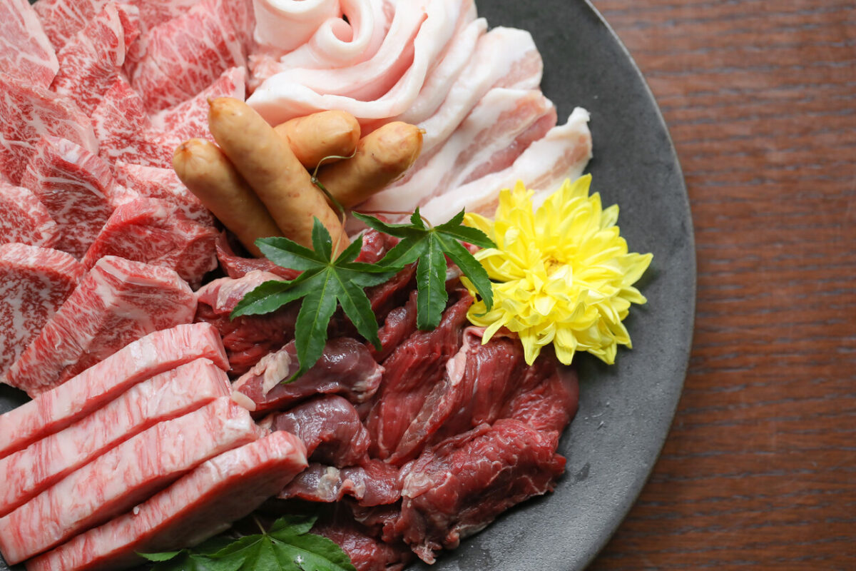 ・お肉盛り合わせ(牛カルビ、牛ハラミ、牛ロース、豚バラ、島豚ソーセージ)