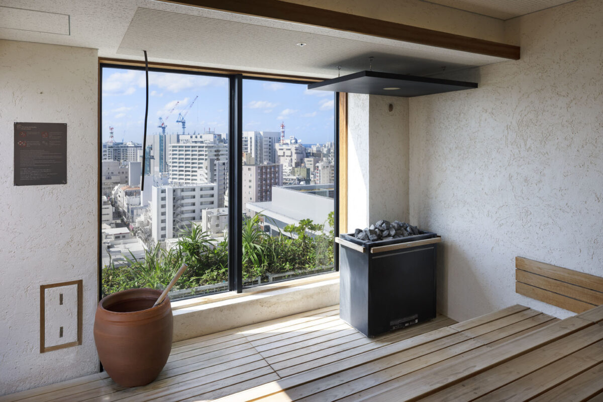 最上階に位置するサウナから那覇の街並みと沖縄の風を味わいながら、心地よい整い体験をお楽しみください。