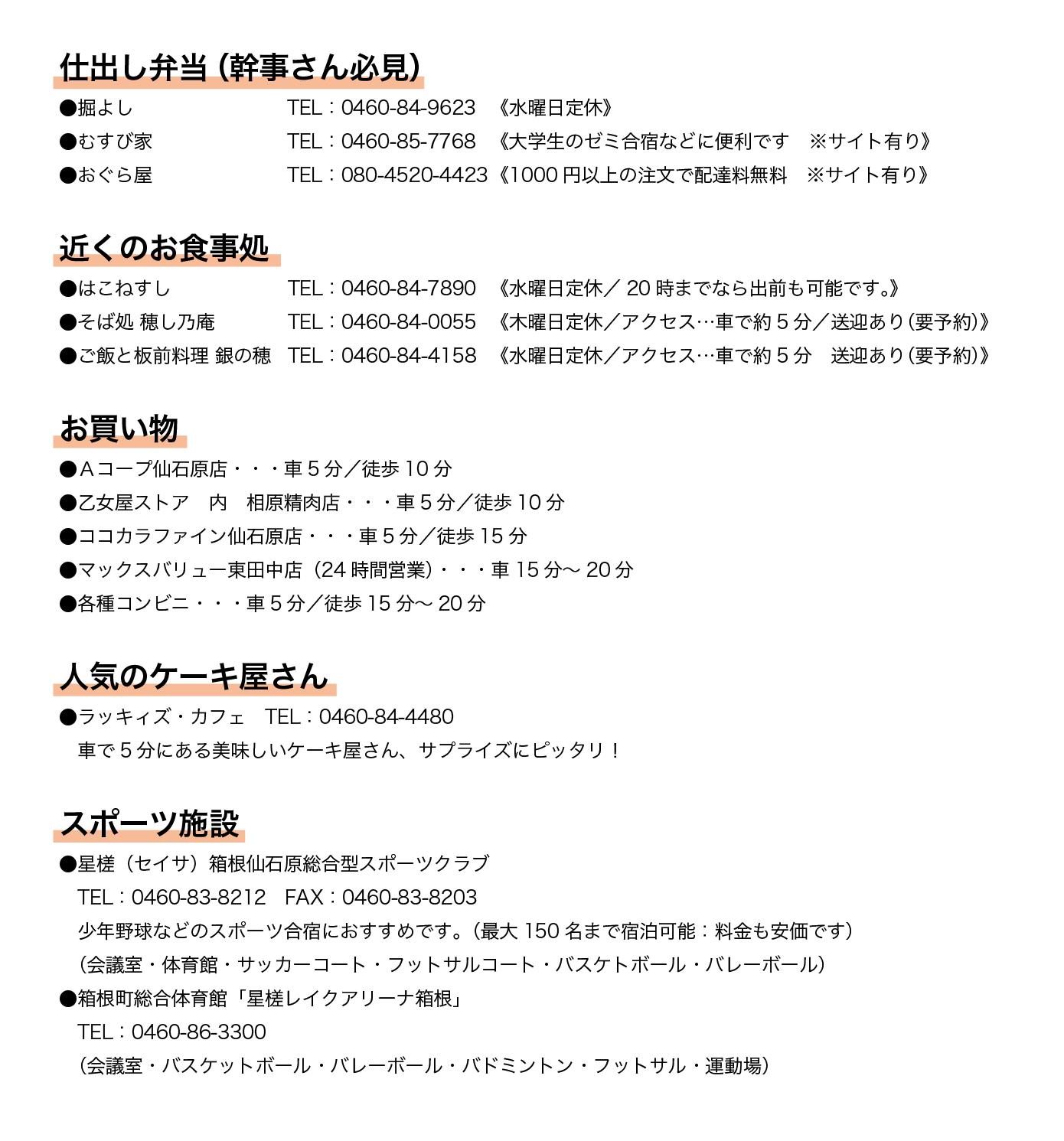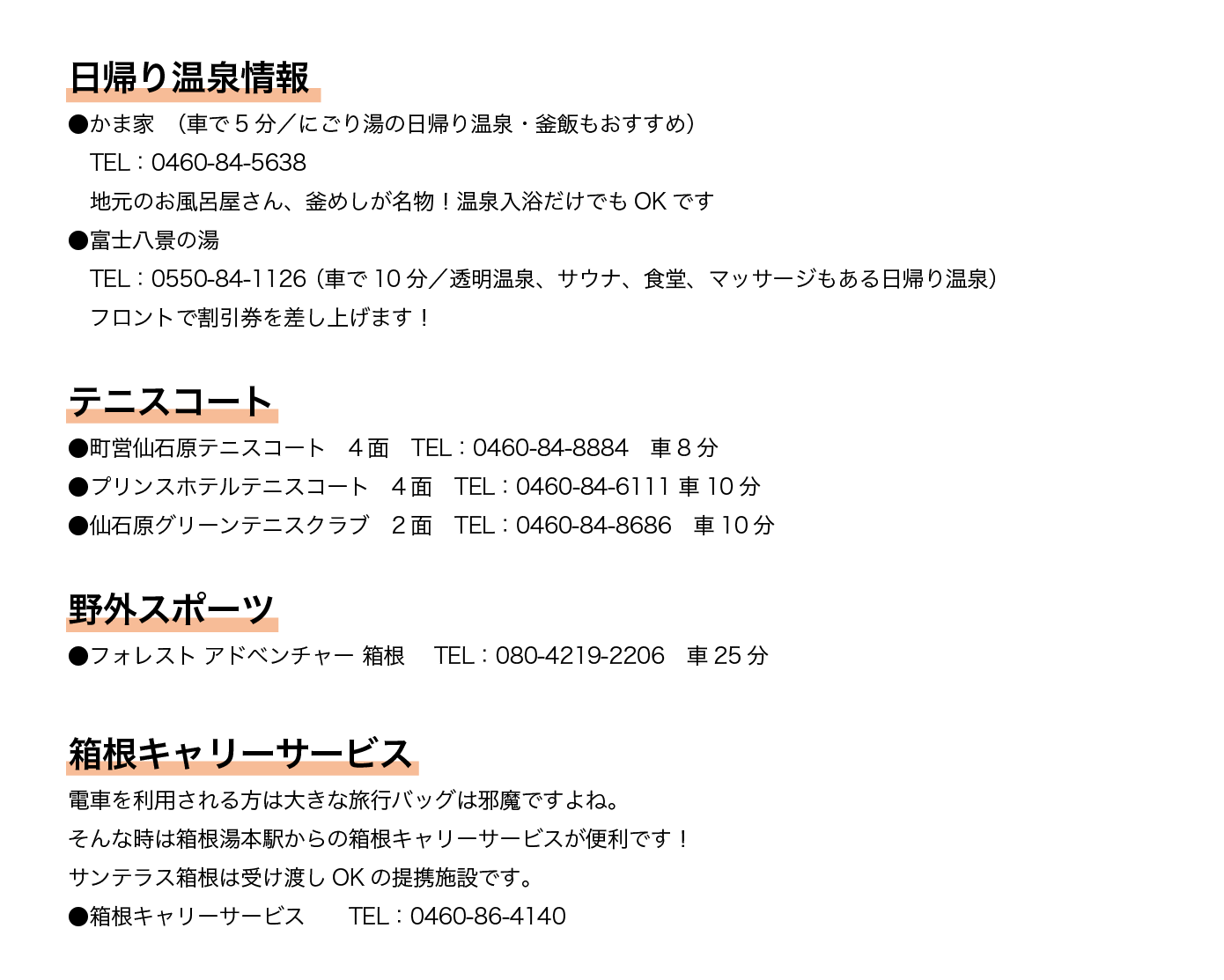 住所 〒250-0631 神奈川県足柄下郡箱根町仙石原1156-1 アクセス 《電車の場合》●小田急線箱根湯本駅線を出て、箱根登山バス「T桃源台」行きに乗車約30分。仙石案内所下車徒歩10分 ●JR小田原駅東口を出て、バスターミナル4番 線箱根登山バス「T桃源台」行きに乗車約50分。仙石案内所下車徒歩10分●JR小田原駅東口を出て、バスターミナル4番 線箱根登山バス「T桃源台」行きに乗車約50分。仙石案内所下車徒歩10分 《車の場合》●小田原厚木道路、西湘バイパス~箱根湯本・国号1号線~宮ノ下・国道138号線~仙石原へ●東名御殿場インターチェンジから国道138号線経由 約15分 |
