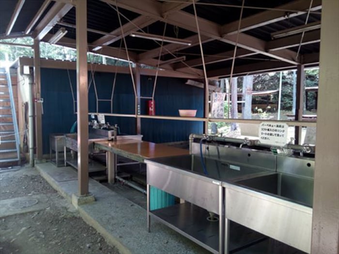 バンガローの中はもちろん、炊事場は屋根完備のため急な雨でも心配無用。