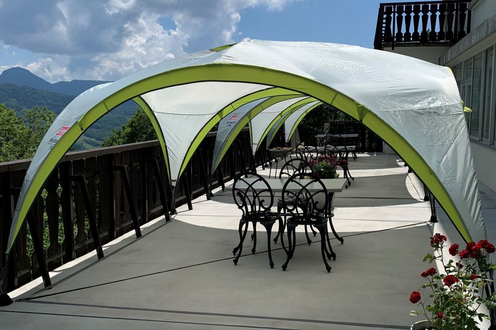 ワーケーションができるようテラスをリノベーションしました。wifi、テーブル、タープをご利用いただけます。大自然の中でお仕事できます。※令和2年度補正予算環境省 国立・国定公園、温泉地でのワーケーションの推進事業