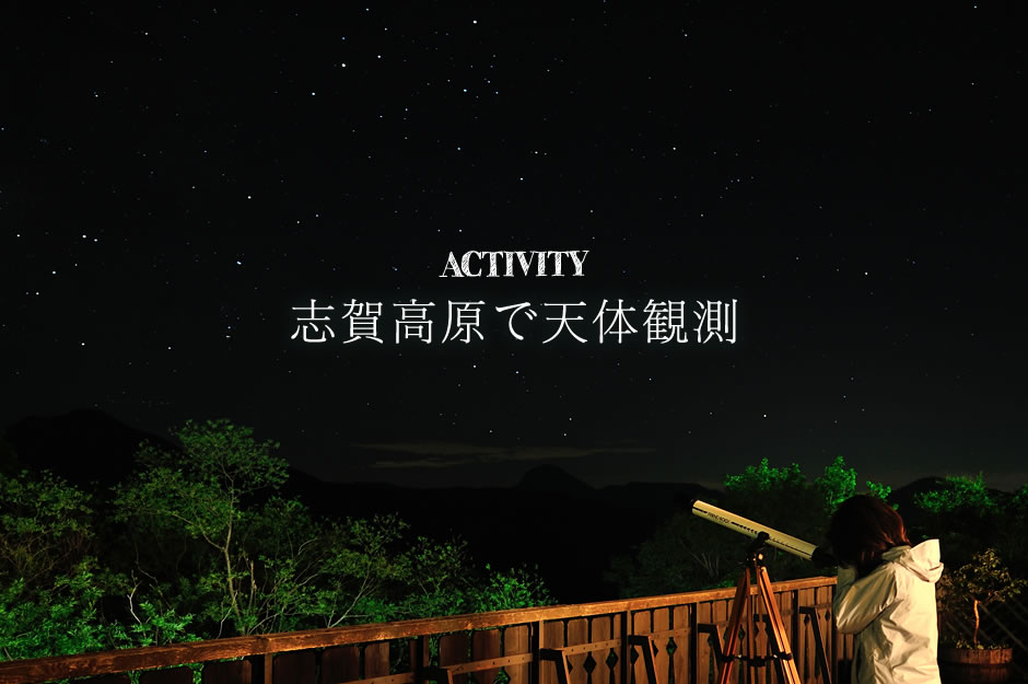 志賀高原はただでさえよく見えます。当館のベランダから、天体望遠鏡で満点の星空を観察できます。