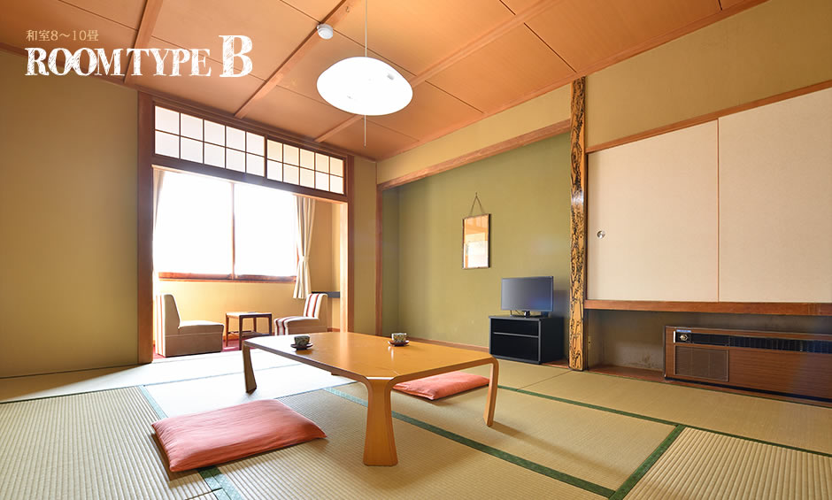 ほっと落ち着く8~10畳の和室タイプです。ゆったり寛ぎながらごろ寝を楽しんでください。(定員4名様)