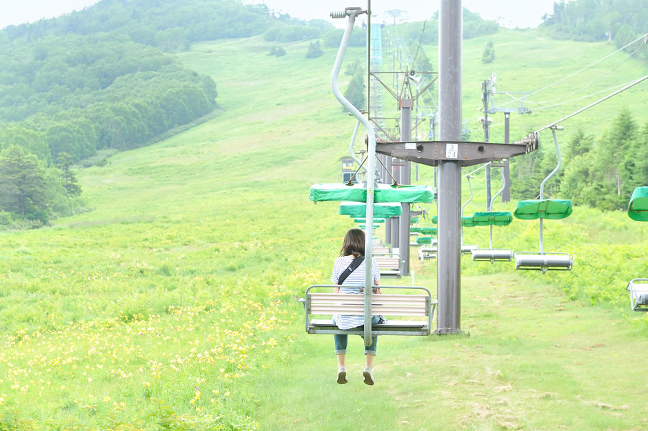 タキモトの目の前、高天原高原リフトから始まります。頂上でお弁当も良いですね!(約1時間/徒歩)