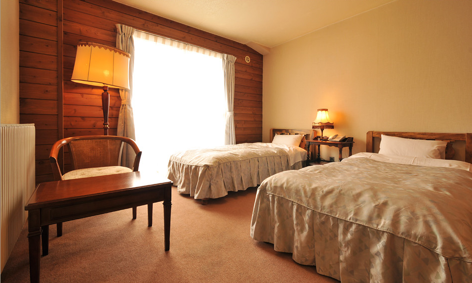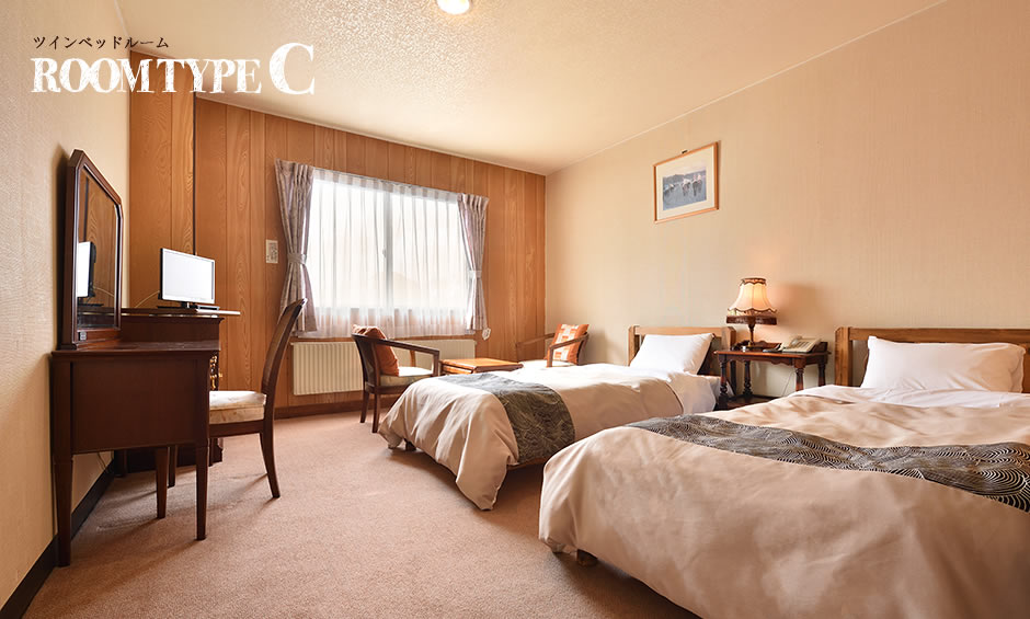 スタンダードなツインベッドルーム。このタイプは窓からの景色も最高です。