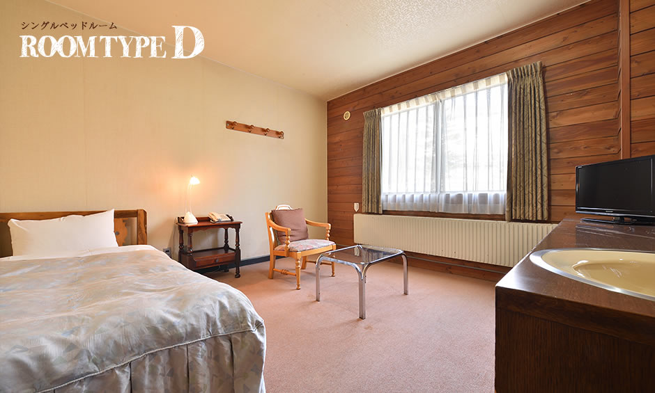 こじんまりとして落ち着いた、シングルベッドの一人部屋です。このタイプは洗面付きです。