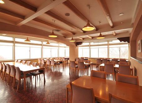 朝食、夕食はこちらのレストランでどうぞ。レストランの壁には、タキモトへお越しいただいたお客様が撮影した、美しい写真を飾っています。