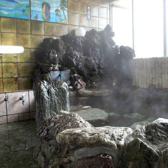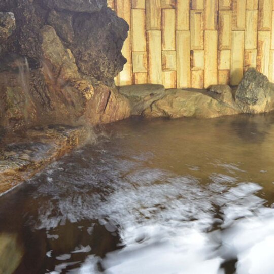 お風呂は滝のように流れ出る岩風呂。