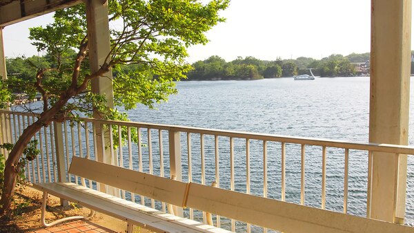シンプルな畳のお部屋で、寝転がってのんびりリラックス♪窓の外には風光明媚な湖が広がります。