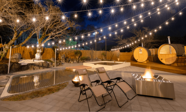 ドームハウスでワイワイ、充実温泉と美味しい食事で楽しむ!