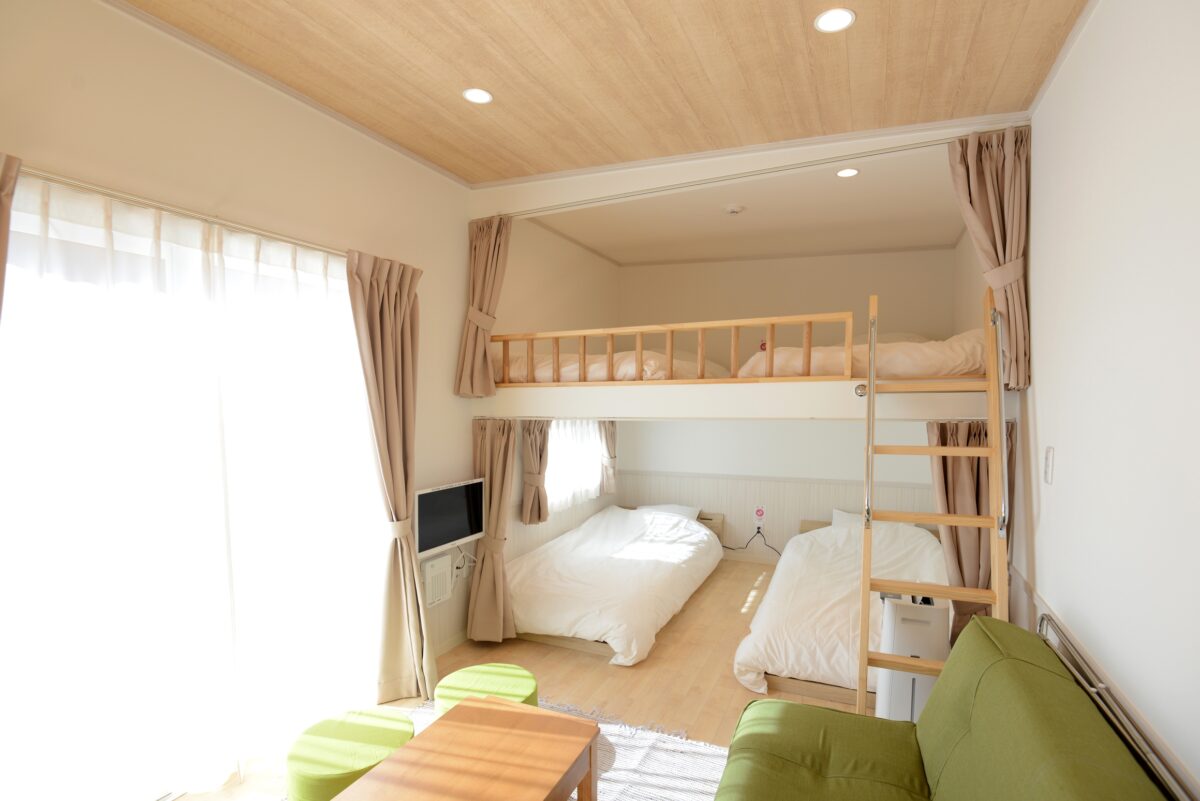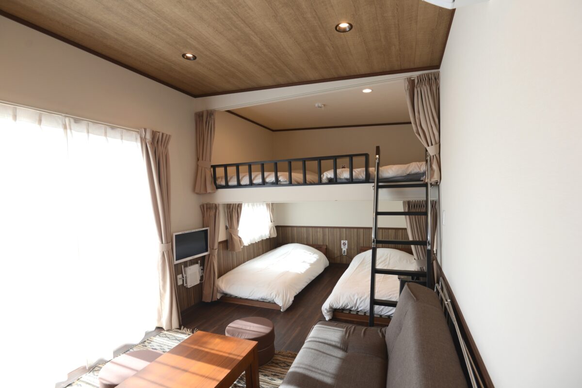 大人数でのグループ旅行でもご利用頂ける7名定員タイプとファミリーに人気の5名定員タイプの2種類の部屋タイプからご利用用途に合わせてご選択頂けます。