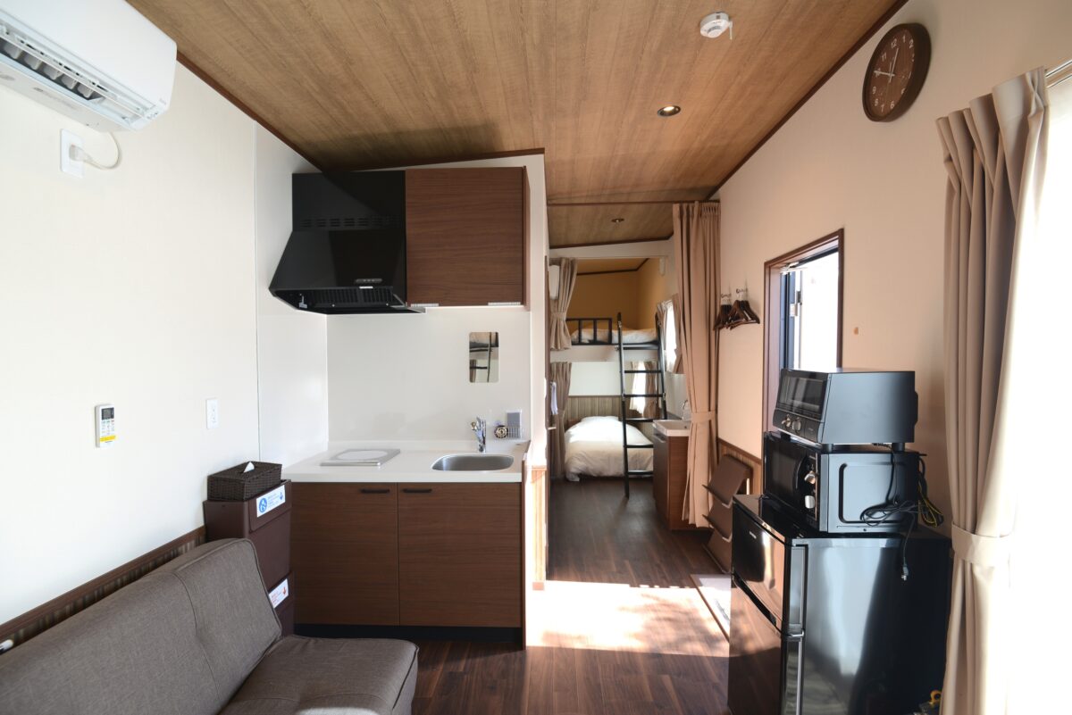 全15棟のトレーラーハウスは5名定員タイプと7名定員タイプの2種類のタイプを設けております。