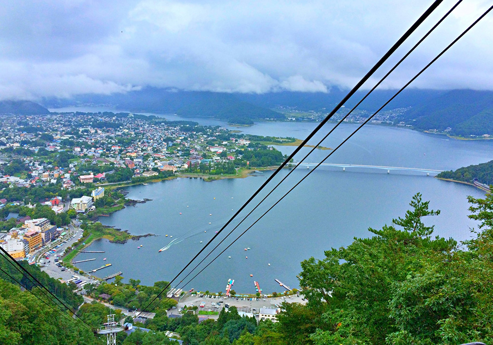 河口湖畔と天上山山頂とを結ぶロープウェイ。