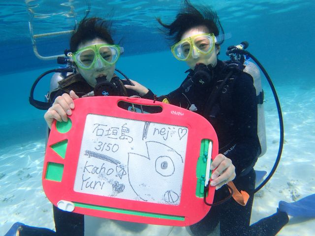 午前中に2ヵ所シュノーケル(スノーケル)をしてから午後に体験ダイビングをするので海慣れしてからの体験ダイビングなのでご安心ください♪
