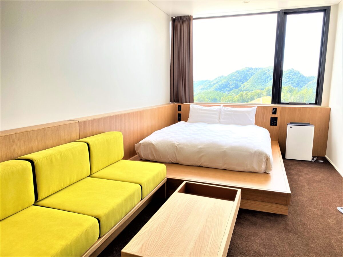 クイーンサイズのベッドを設置し、VISON HOTELS内最大の窓を設置し、眼下のVISONの景色をお楽しみいただけます。