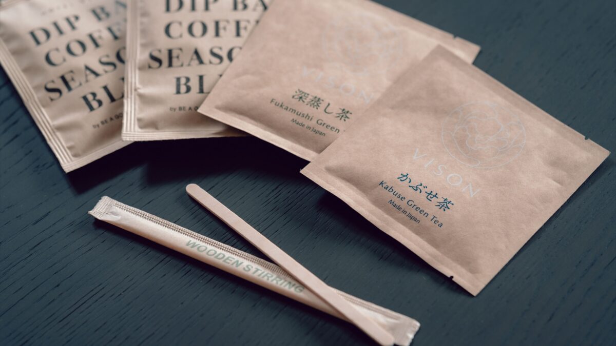 お茶栽培に適した気候の地元多気産のお茶を使用したティーセットをご用意しています。収穫する前に茶葉に覆いをかけ遮光、茶葉のアミノ酸の量を増やす伝統的な栽培方法で作られ”かぶせ茶”、一般的な製法よりも茶葉を長く蒸して作られた、すっきりとキレのよい後味が特徴の”深蒸し茶”、緑茶として親しまれている「やぶきた種」を100%使用したほのかな甘みの紅茶、ドリップバックのコーヒーをご用意しています。