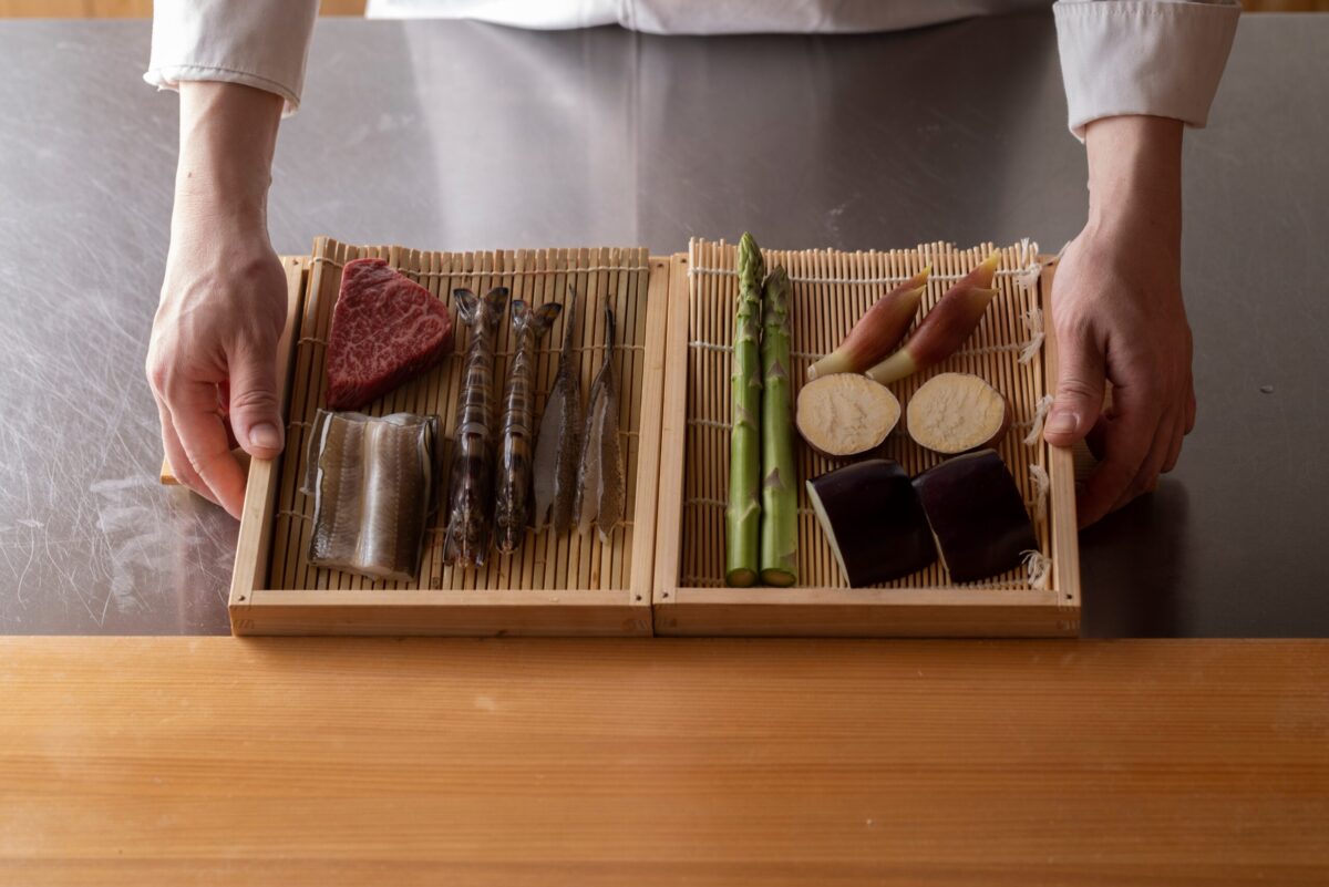 「笠庵 賛否両論」にはお品書きはございません、三重県産の旬の食材をもちいたマスター笠原こだわりのメニューをお愉しみください。