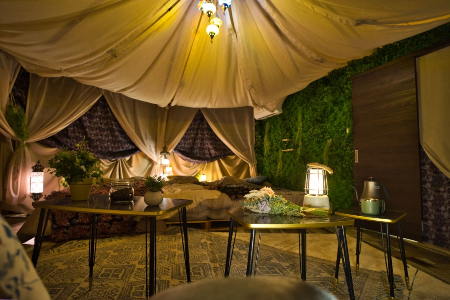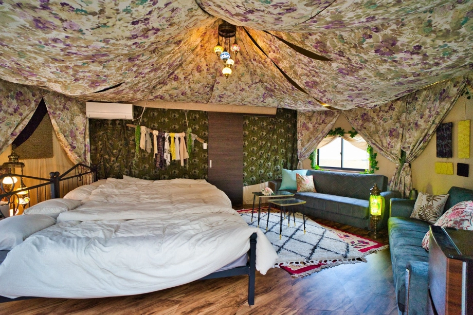 トルコ製のユルト(遊牧民のゲル)に現代の過ごしやすい環境とオリエンタルな内装を掛け合わせました。