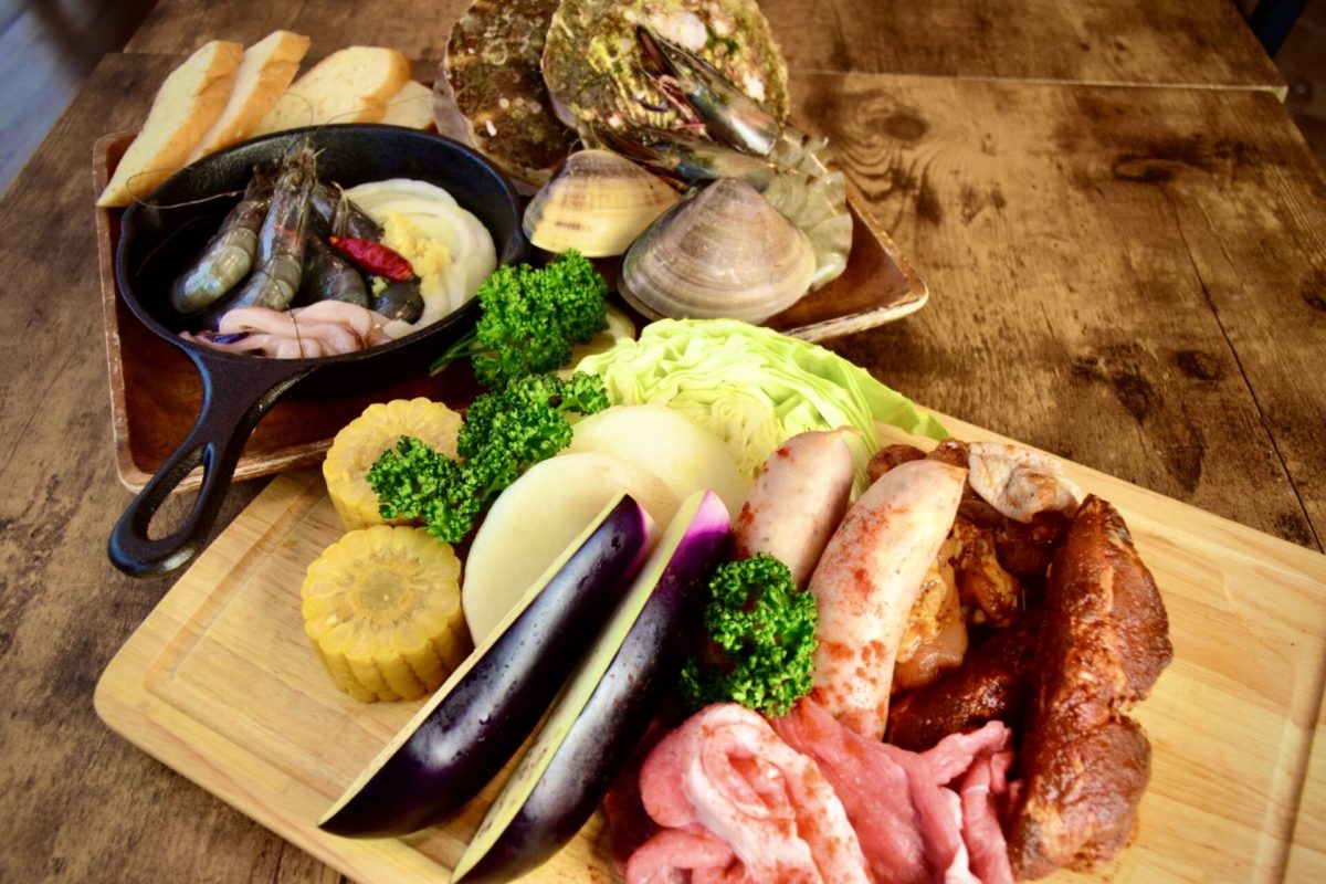 夕食・朝食も料理を作る、食べるがアクティビティになるように、グリルで仕上げる料理、ダッチオーブンで仕上げるごはん、パエリア、アクアパッツァなど焚火を使った体験型の料理も気軽に楽しめる!