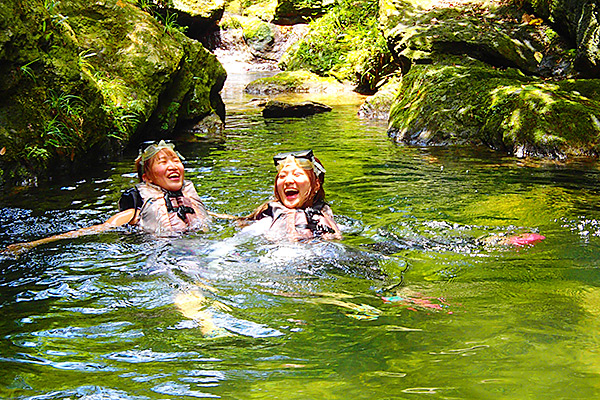 やんばるの沢トレッキングでは、東村にある沢をガイドと一緒にゆっくりと歩きます。