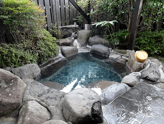 全国でも希少価値の天然温泉「青湯」を貸切露天風呂で