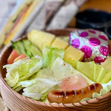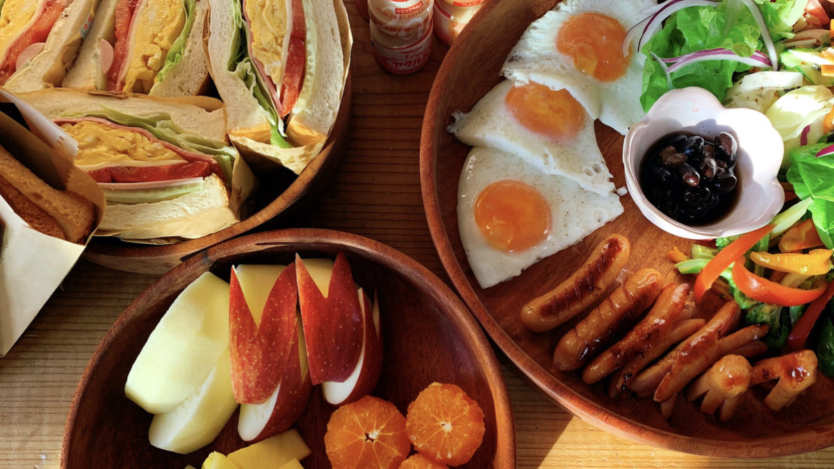 ボリューム満点の無料朝食サービス!内容はおにぎりだったりサンドイッチだったり、その日の材料で作ります♪