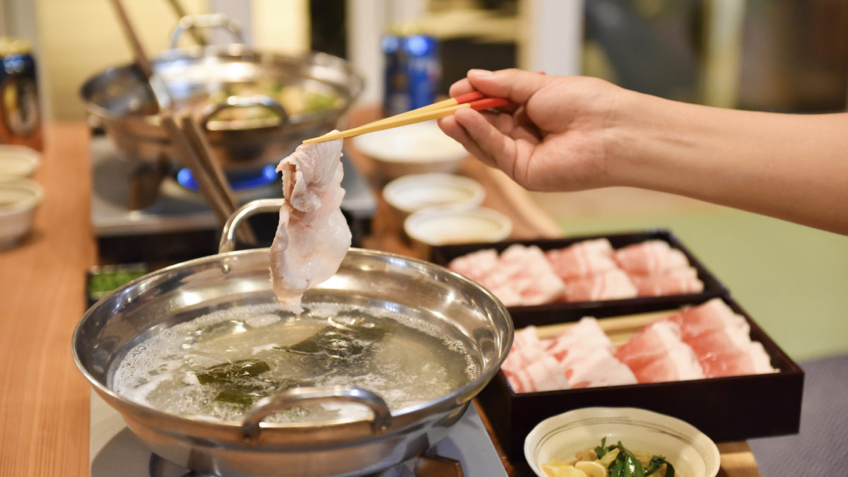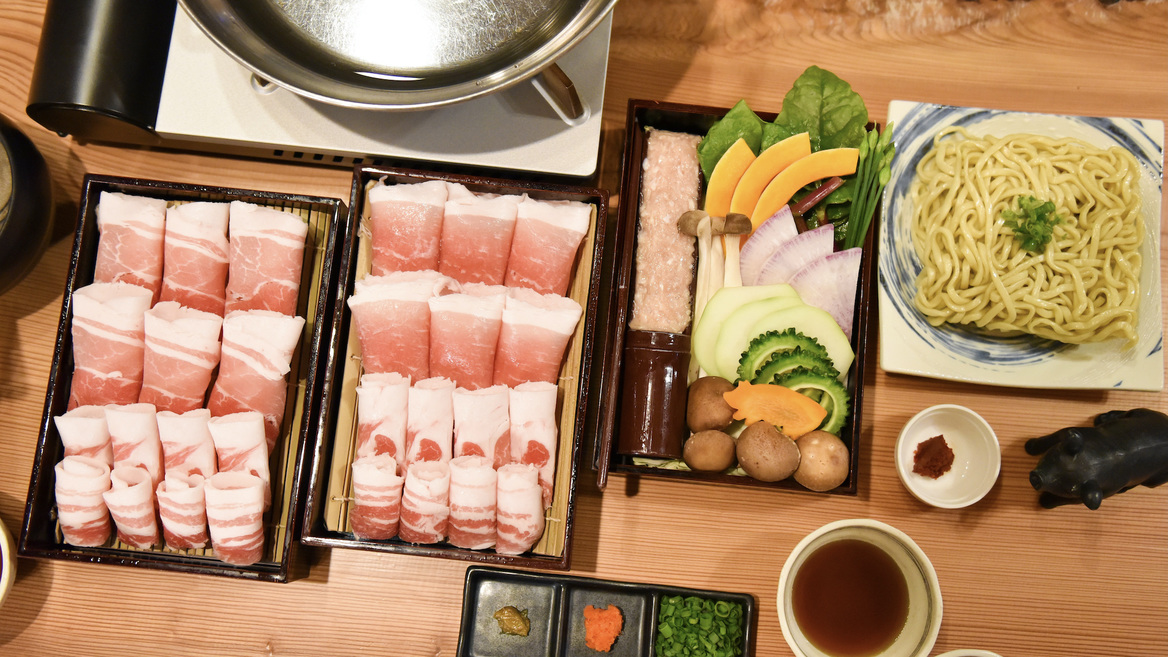 沖縄北部は名護の人気店「松の古民家」さんの、希少な黒琉豚アグーの旨味たっぷりこだわりのしゃぶしゃぶをお宿でお楽しみいただけます。