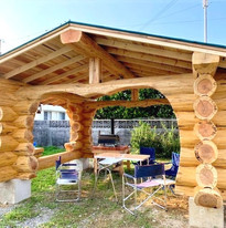 ログハウスの職人が造る​本格的な丸太のBBQハウス。