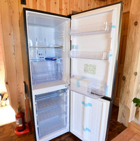 こんなに大きな冷蔵庫も!洗濯機(洗剤あり)やガス乾燥機もあるので、1泊〜長期まで、心置きなくお楽しみいただけます♪