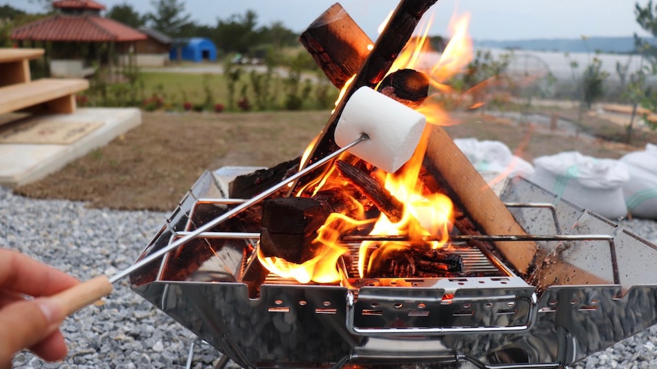 BBQの後は焚き火を囲んで、満天の星空を眺めながら、たくさん語ろう。特大マシュマロ付き♪