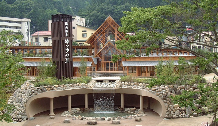 塩原温泉の中心地に位置しており、売店やレストラン、直売所も備える複合施設です。