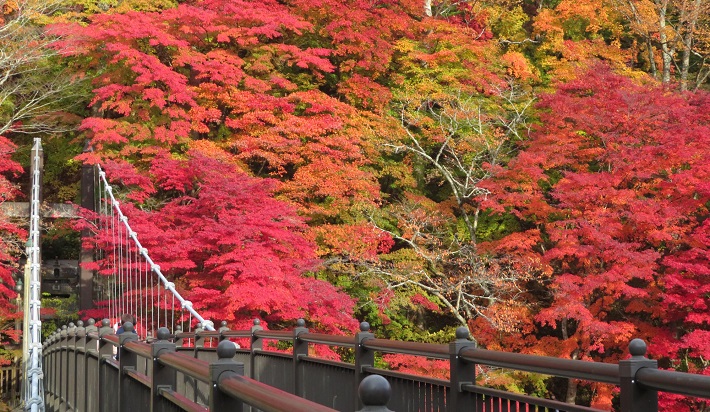 テラスの裏手にある「紅の吊橋」では、秋頃になるとその名の通り見事な「紅」の景色を見ることができます。