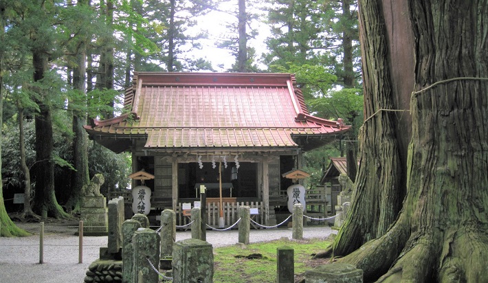 塩原温泉街の高台に位置するこの場所には、樹齢およそ1500年の「逆杉」、別名「夫婦杉」があります。