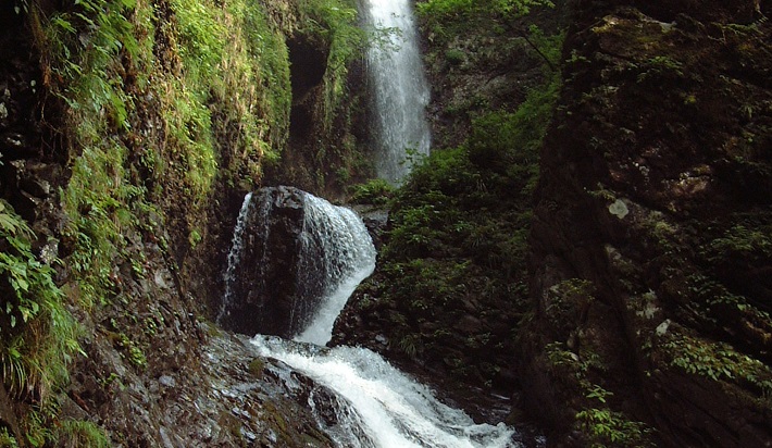 塩原の代表的な滝であり、全長およそ130mを3段になって流れる様子が「竜が登っているように見える」ことからこの名がつけられました。