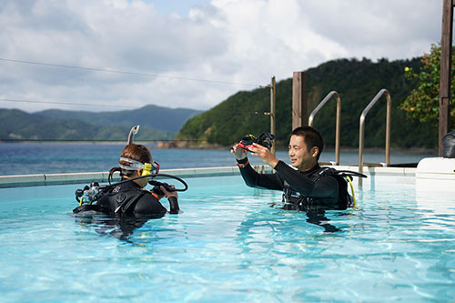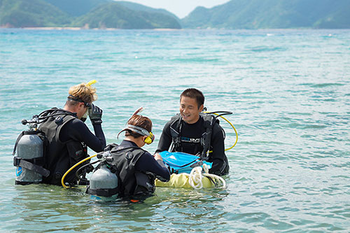 手つかずの海が残る奄美大島南部。施設のフロントビーチで人気のマクロ生物を楽しむダイビングから、ダイバーの憧れ・加計呂麻島へのダイナミックな地形を楽しむ遠征ダイビングまで、経験豊富なインストラクターが要望に合わせてご案内します。自社船もバリアフリー設計となっており、障がい者の方や車いすユーザーの方を含め、どなたでも安心してお楽しみいただけます。