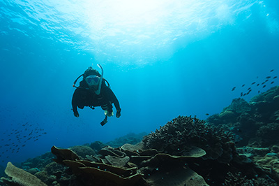 加計呂麻島まで足を延ばせば、神秘的な青の洞窟や、一面に広がるサンゴ畑もあり、ダイビングはもちろん、スノーケリングにも最適。