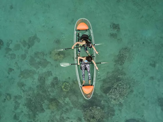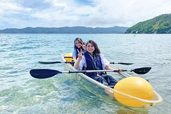 ゼログラヴィティ奄美大島で1番人気の透明なカヤック!底が透けているので、グラスボートのように船底から魚やサンゴを観察することができます。川や湖で使うカヌーよりも大きいので安定性もばっちり!あまり濡れないので普段着で参加する方も多いです。