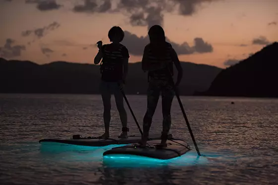 ゼログラヴィティ奄美大島では、SUPもライトアップすることができます!日没後の海水浴の人たちがいなくなった清水海岸はとても静かで癒されます。小さな集落のわずかな明かりを頼りに、夜の海をサップで冒険しましょう!