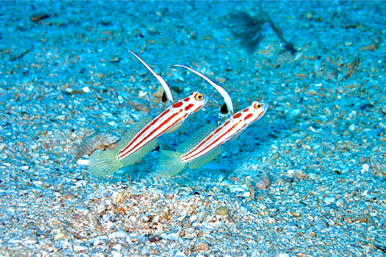 清水ヴィラ目の前のビーチでは、サンゴも広く生息し、ウミガメにも出会えます。少し距離を伸ばせば、ヤシャハゼやヒレナガネジリンボウなどの人気のハゼがいる場所へも。