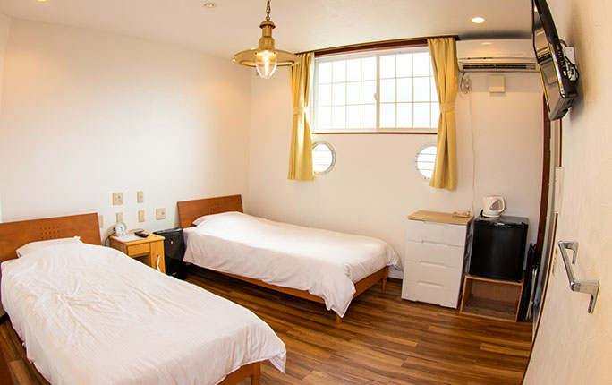ツインルームを4部屋完備した計8名宿泊可能な宿泊施設です。コロナ対策で抗菌仕様にしました。客室内にトイレやシャワーもございます。